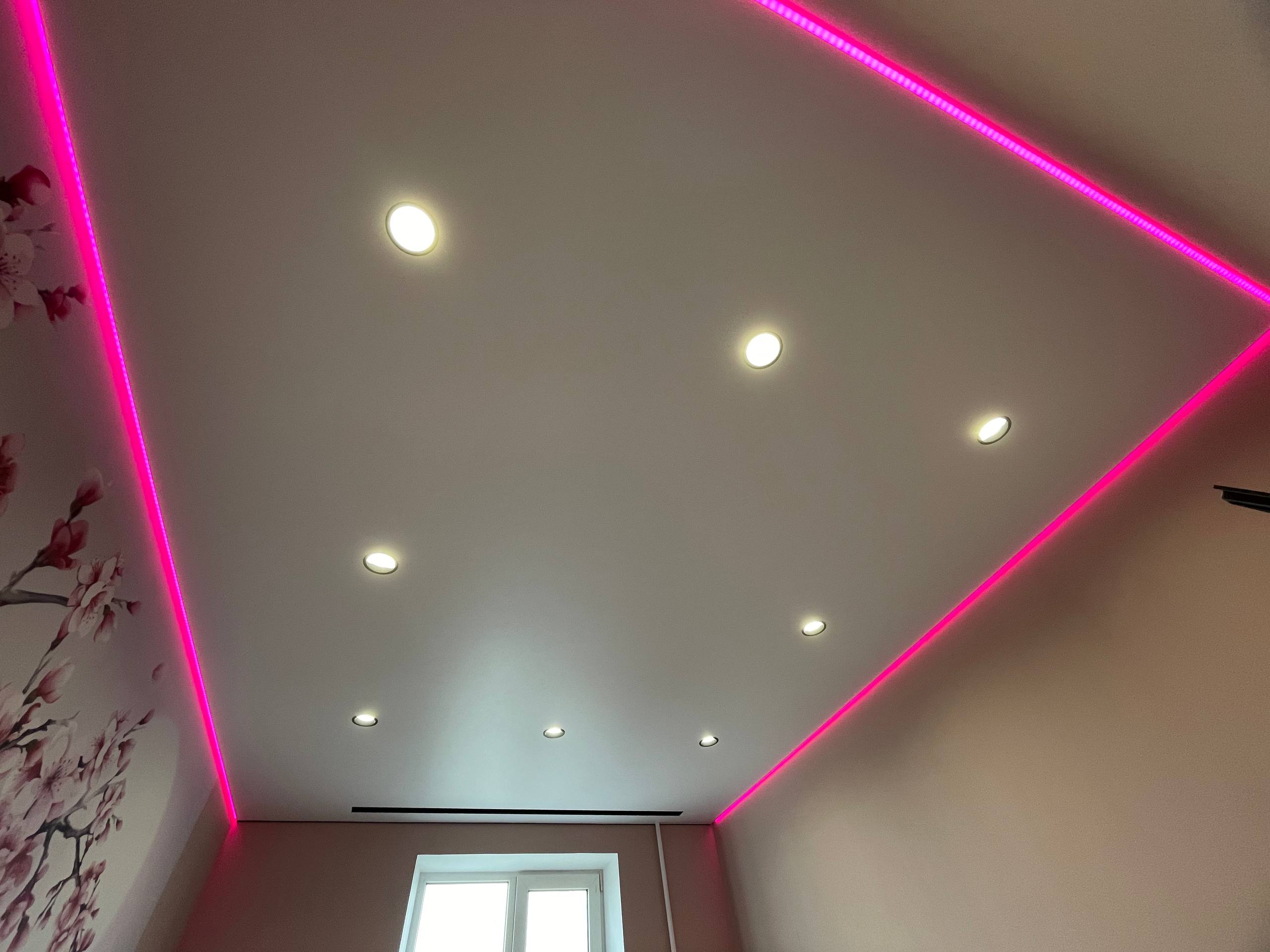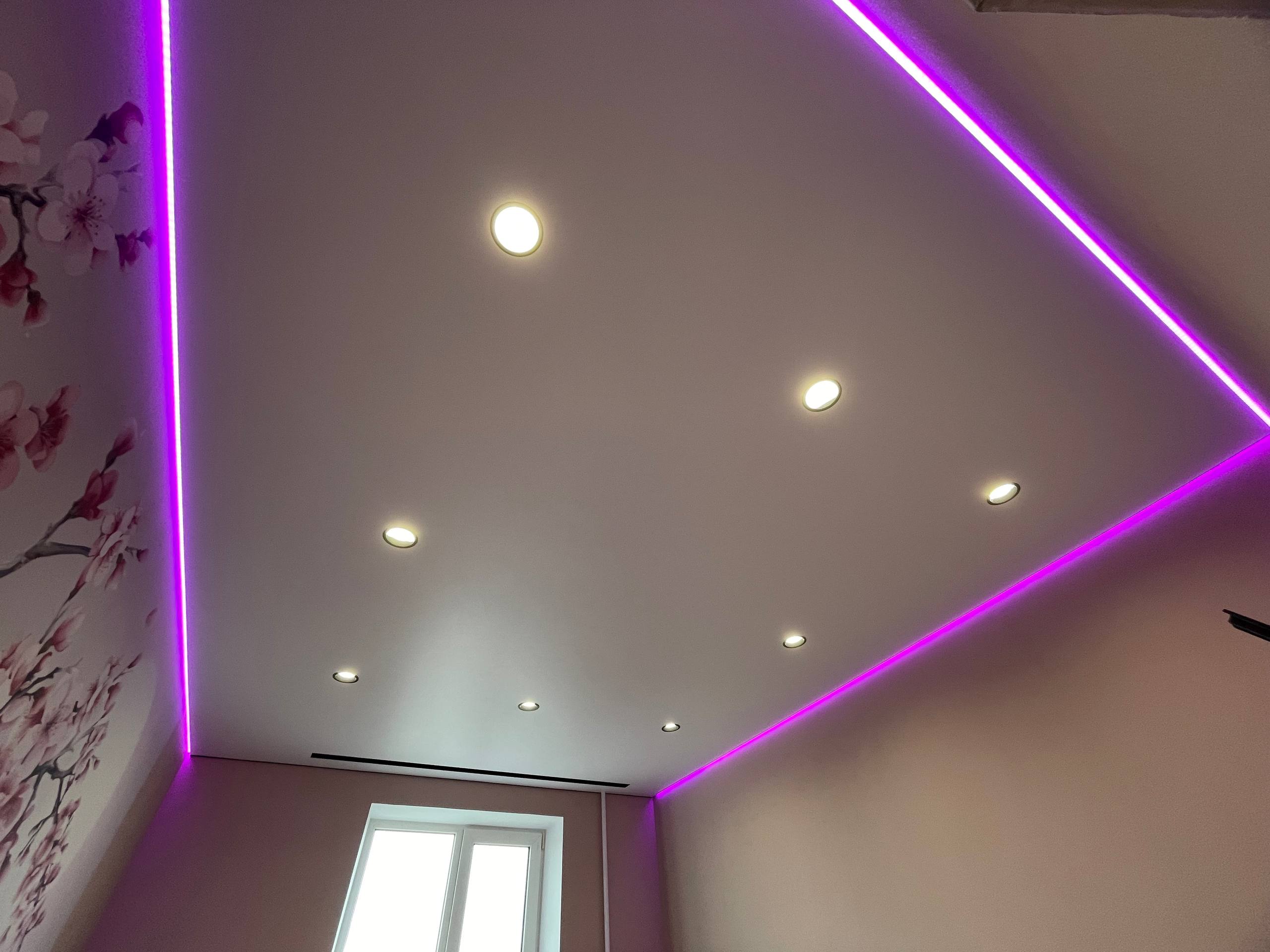 Мы с удовольствием завершили установку натяжного потолка в спальне, который стал настоящим украшением пространства. Нашей особенностью является эффект "парящего" потолка по периметру, который придаёт комнате лёгкость и воздушность. С помощью ленты, меняющей цвет свечения, мы создали уникальную атмосферу, позволяющую задавать настроение в зависимости от времени суток или ваших предпочтений. Встроенные утопленные светильники обеспечивают равномерное освещение и подчеркивают элегантные линии потолка. Результат преображения превзошёл все ожидания — теперь спальня стала настоящим уголком уюта и стиля!