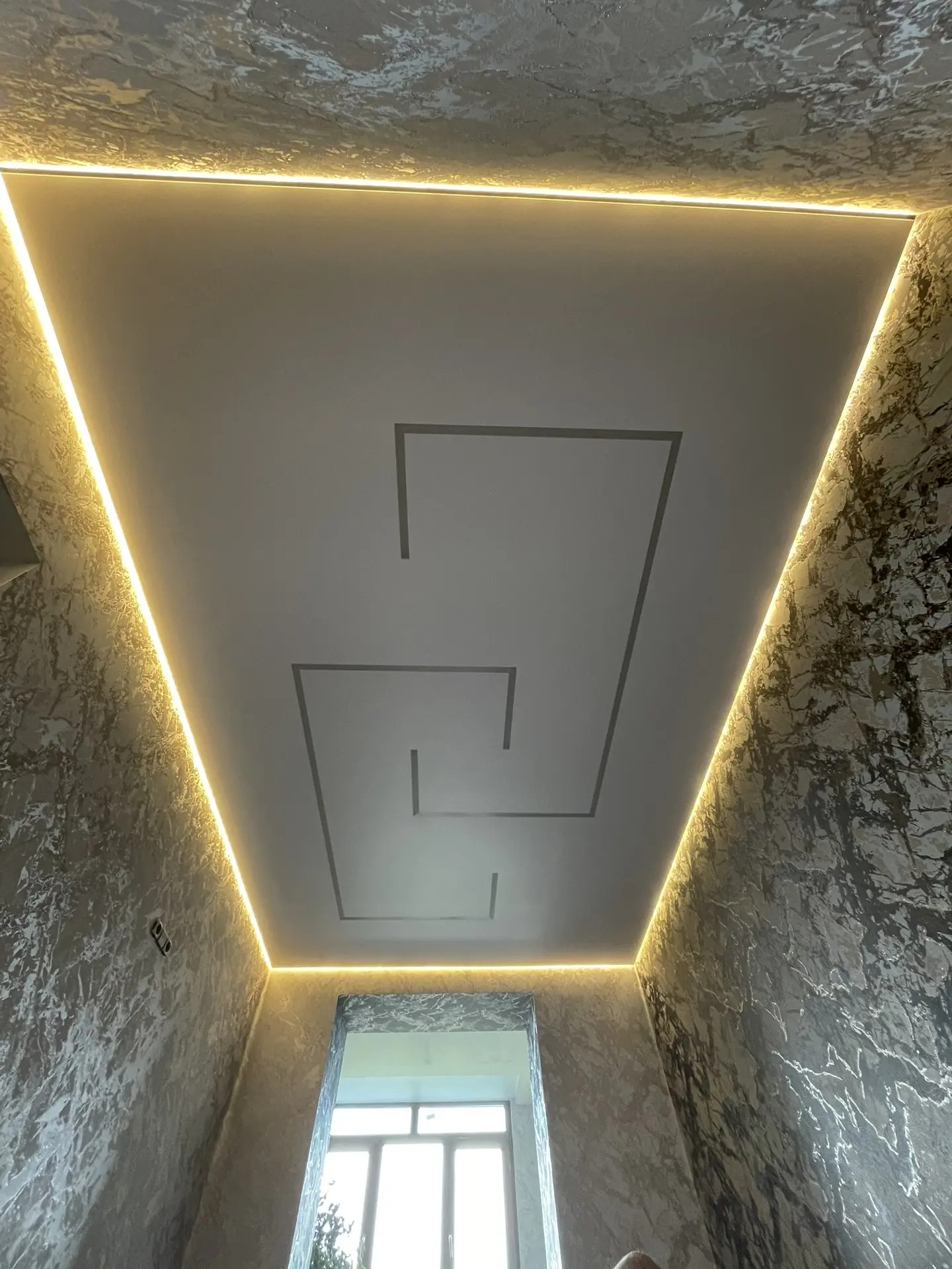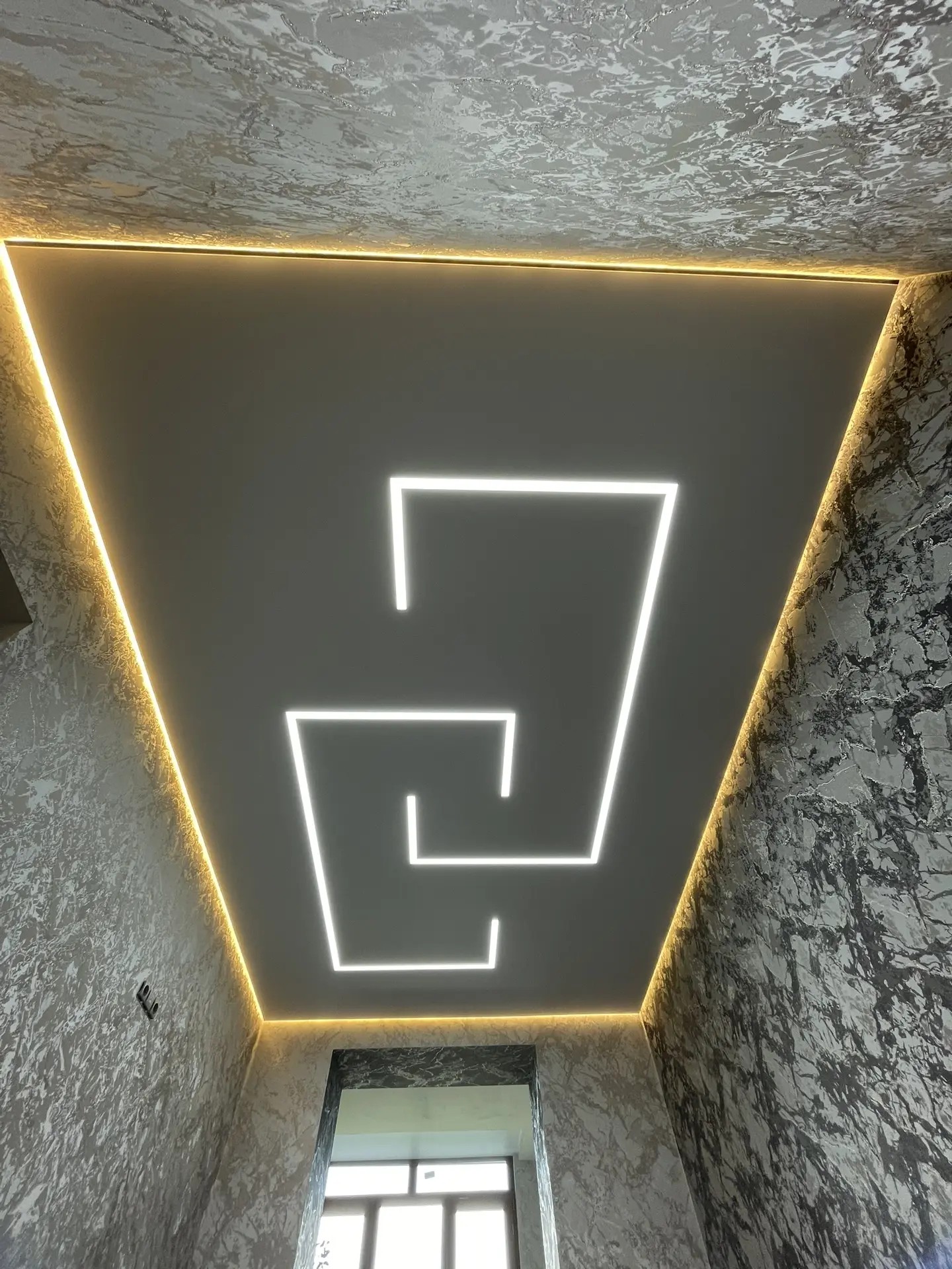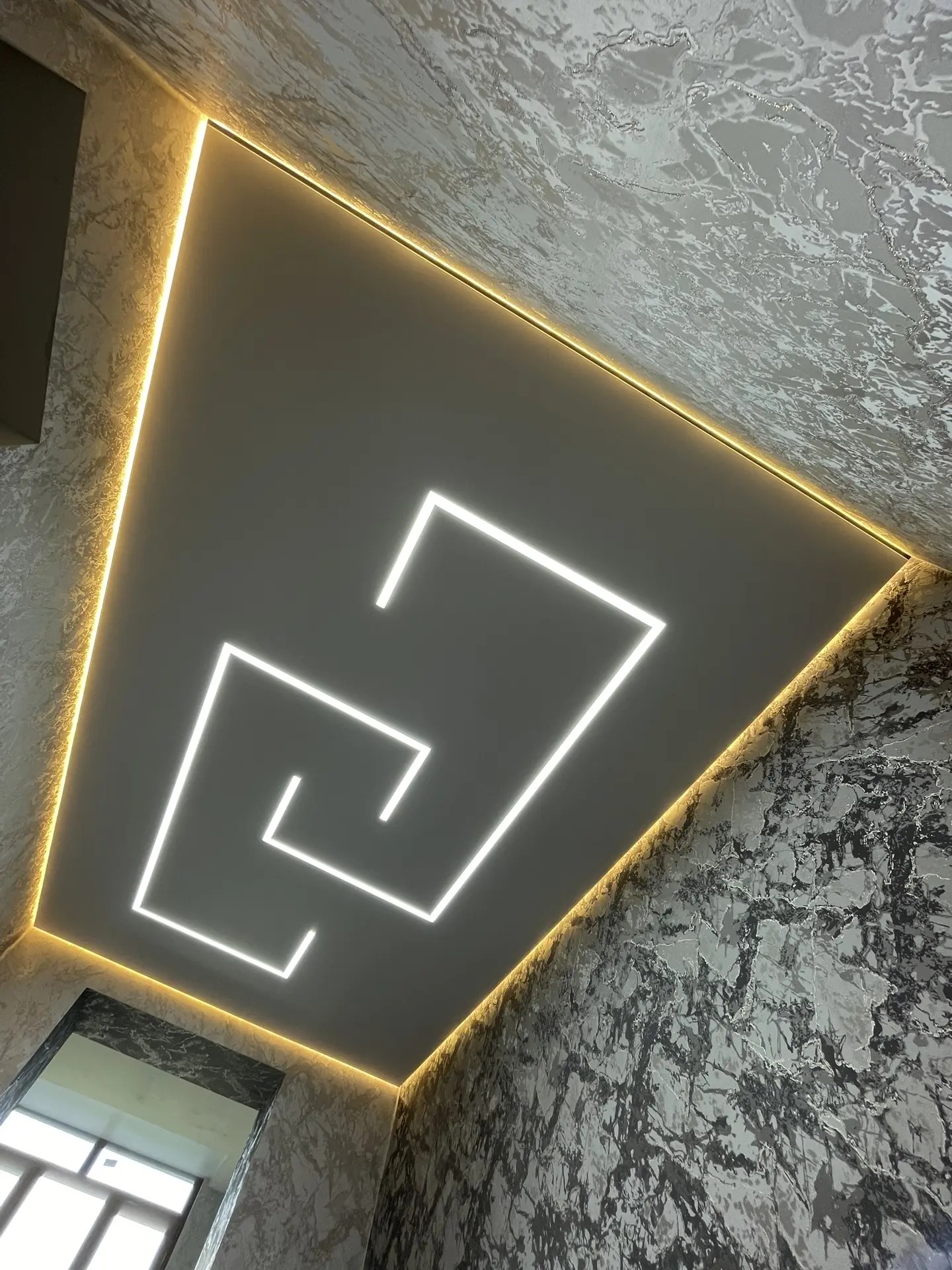 Преобразили обычный потолок в гостиной, с помощью современного натяжного потолка, добавили подсветку по периметру в теплом оттенке , в качестве основного освещения пересекающие световые линии– это инвестиция в комфорт и красоту вашего дома. Это возможность создать уникальное пространство, которое будет радовать вас и ваших близких долгие годы. Не бойтесь экспериментировать с дизайном и светом, и ваша гостиная станет настоящим оазисом уюта и стиля!