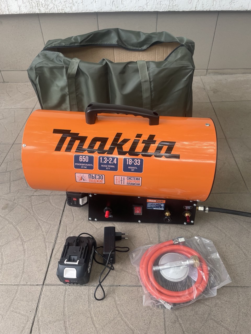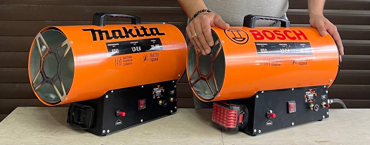 Аккумуляторная тепловая газовая пушка 18-33квт. Плавная регулировка подачи газа, работает от акб 18в (Bosch, Makita, Dewalt, Milwaukee) время работы на одном акб-10часов, режим быстрого отключения подачи газа. Применяется для установки натяжных потолков и обогрева помещений.